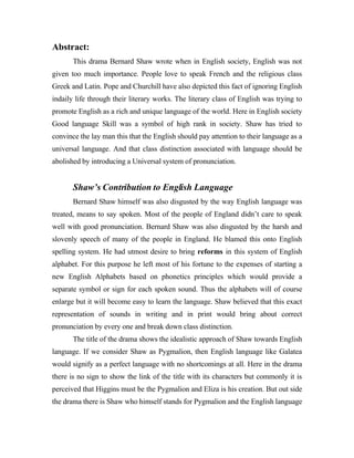Theres no right or wrong in it. We hear language in all its forms in Pygmalion. The cool new slang that the young people use Explanation.