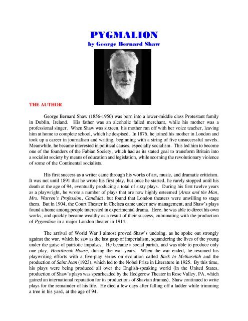 Pygmalion Lit Chart Pygmalion Author Bio Full Name George Bernard Shaw Date Of Birth July 26 1856 Studocu